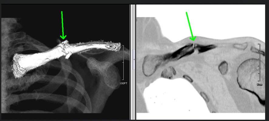 ① 鎖骨骨折のCT画像