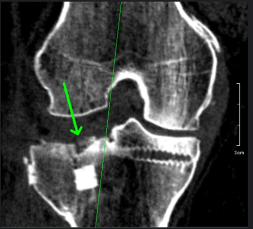 ※矢印部で骨癒合が認められず偽関節になっています。
